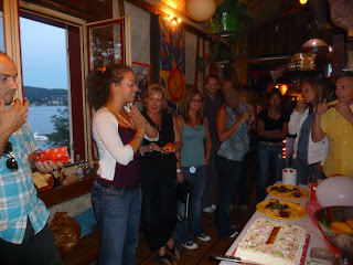 One late Friday evening I returned home to Zurich from my summer exploits. Phew! This was definitely one of the best summers of my life. My Dad was visiting, using my house as a launch pad for a three week vacation. We caught up a bunch and the next day we headed into the Zurich Street Parade and 'danced' in the street to the theme of 'Friendship' with the other 800,000 people rocking out. Rocking out in one big urban puff of neon fishnets, neon wigs and neon feathers to the best house music floating by on these enormous lovemobiles. Woah!Then, casually, we drift towards a Mexican restaurant for some food because, I believe, I feel like nachos. Surprise! A 26th birthday party for me, with all my friends waiting there. My Dad seemed to think that because of my not having a birthday party these past few years, he should go through my phone address book and plan it himself. Outstanding! It was great to see all of my friends before work began (even if Dad displayed naked baby pictures of me in public), and so nice that my Dad could meet so many of my Zurich friends, and that they could meet someone who is so important to me in my life and in who I am; him! Thanks, Dad, for the plates and plates of nachos and the past 26 years of you and me. Quick! Post this before I get too semi-mental!